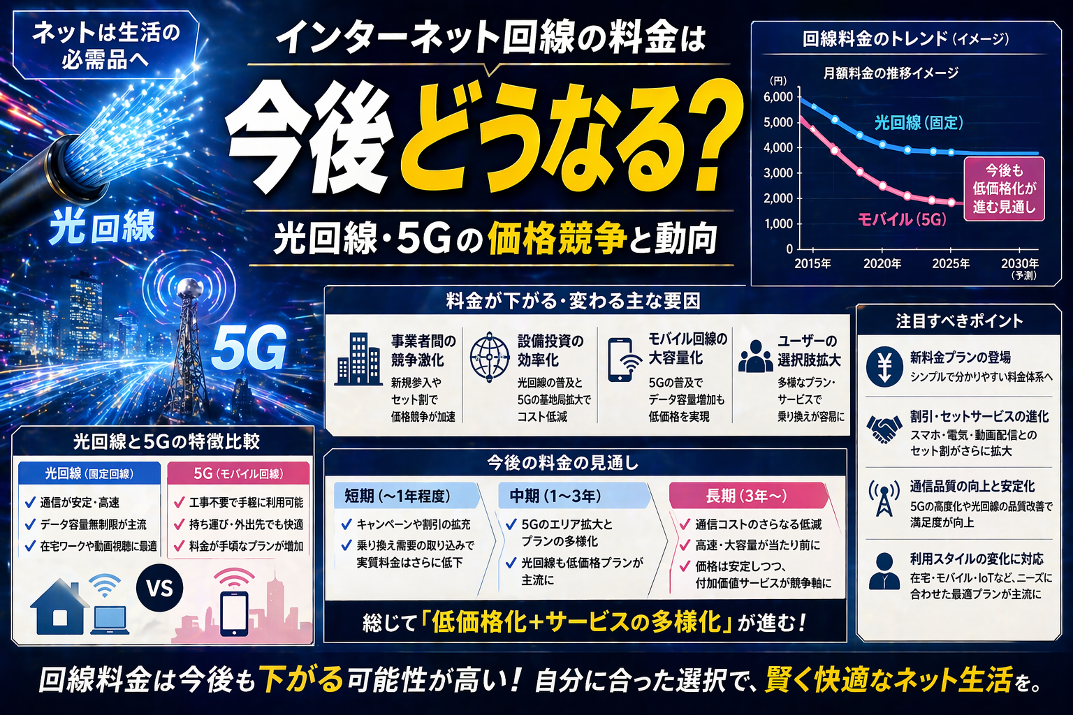 インターネット回線の料金は今後どうなる?光回線・5Gの価格競争と動向